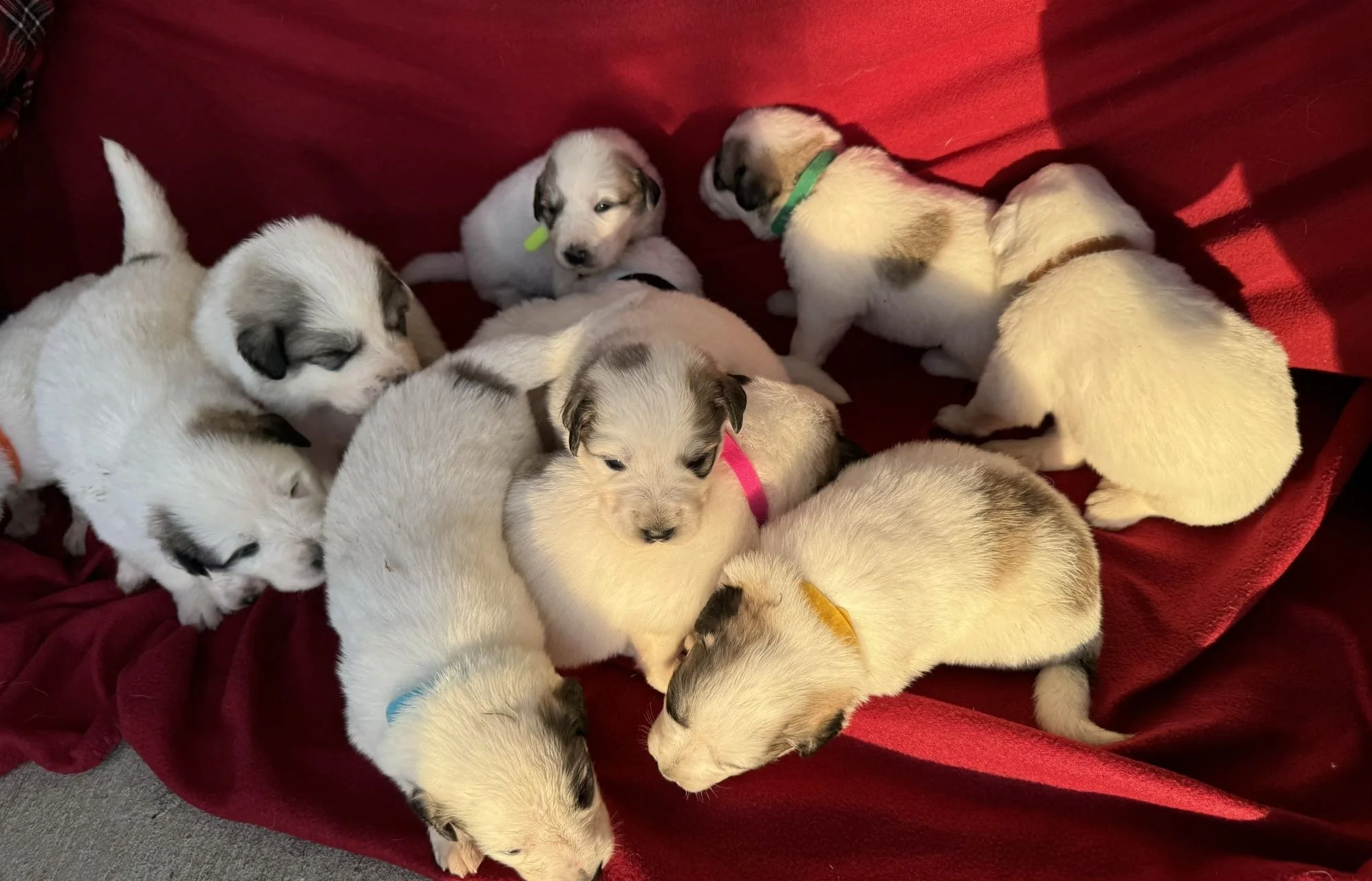 Both our parents are full blooded Pyrenees. Our mom is AKC registered, and our dad has a DNA test of proof, so we are the authentic Pyrenees.